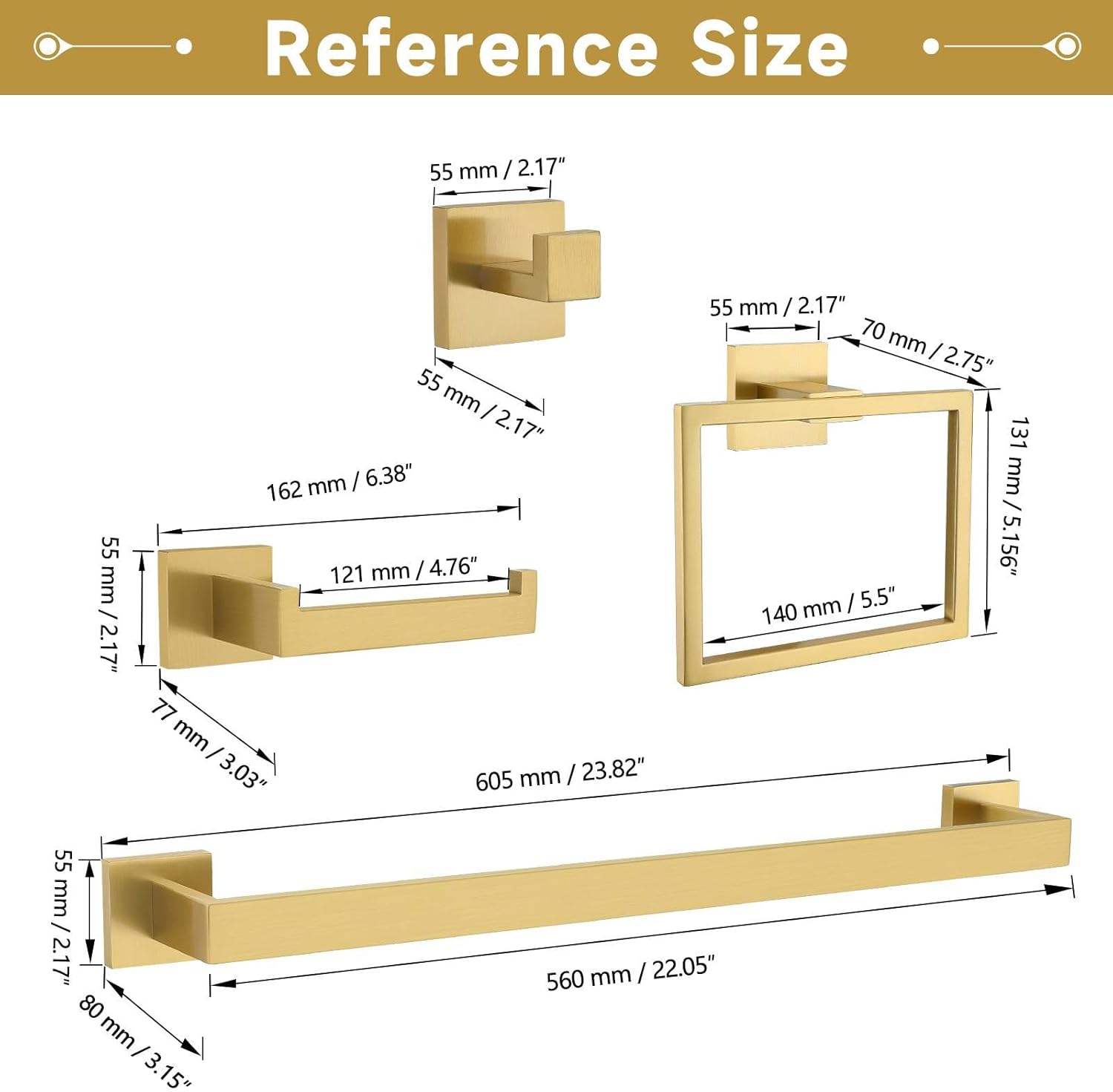 10-Piece Bathroom Hardware Accessories Set-Brushed Gold Towel Bar, Holder & Racks-SUS304 Stainless Steel-Wall Mounted,23.6-Inch