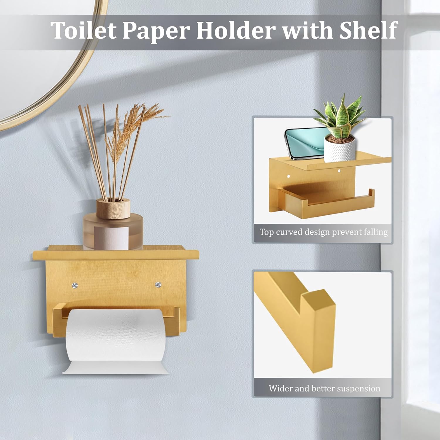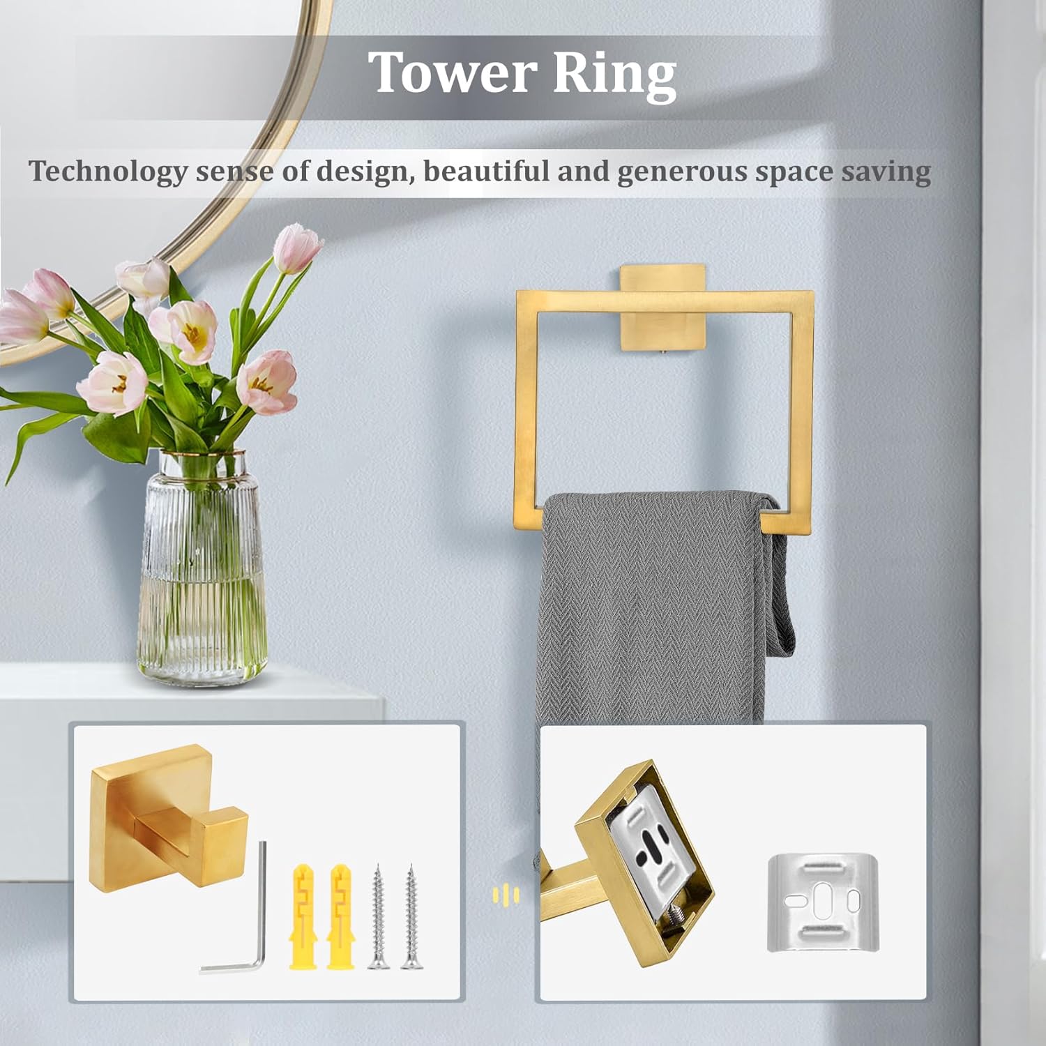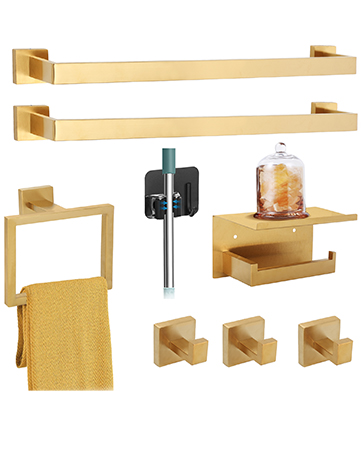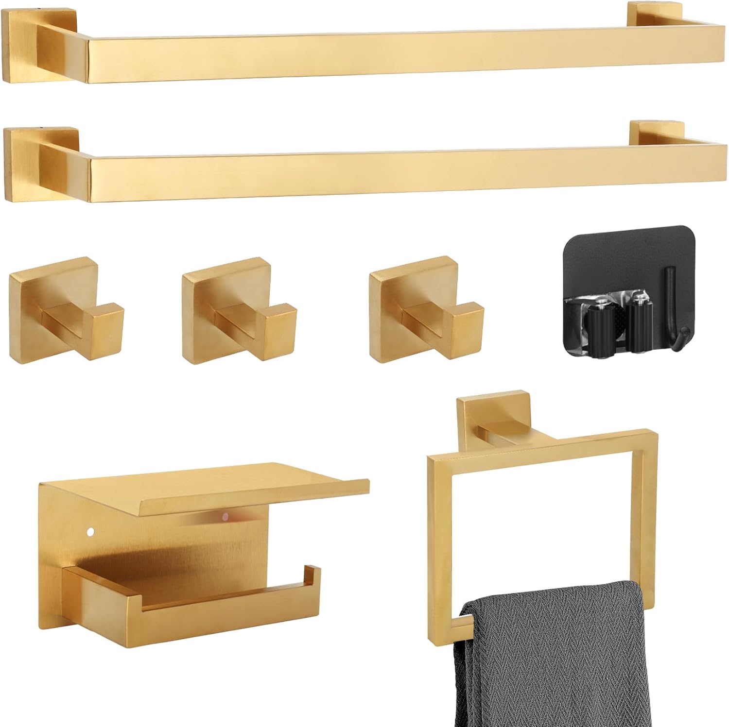 8-Piece Gold Bathroom Hardware Set, 23.6 Inch Towel Bars Set, Brushed Gold Bathroom Accessories Stainless Steel Bathroom Hardware Set Wall Mounted