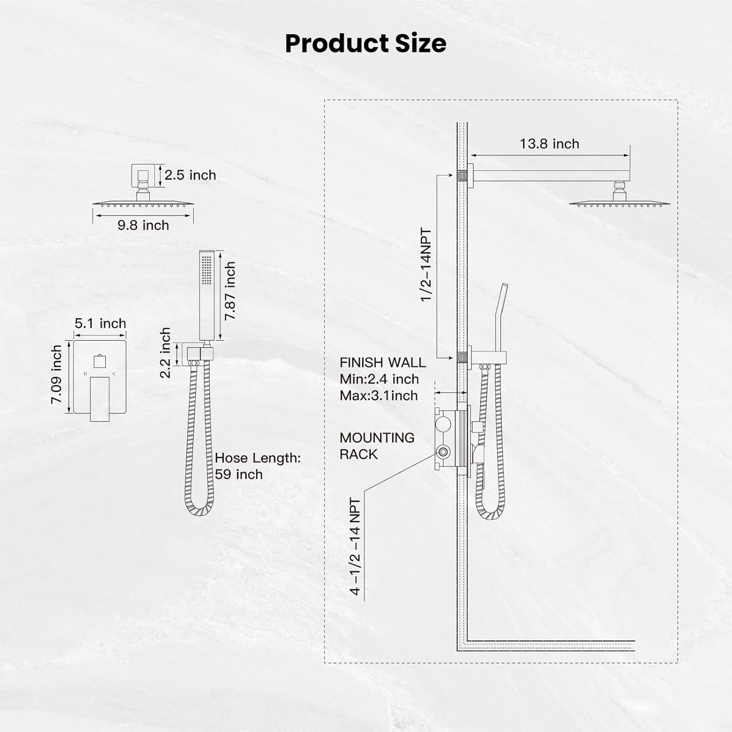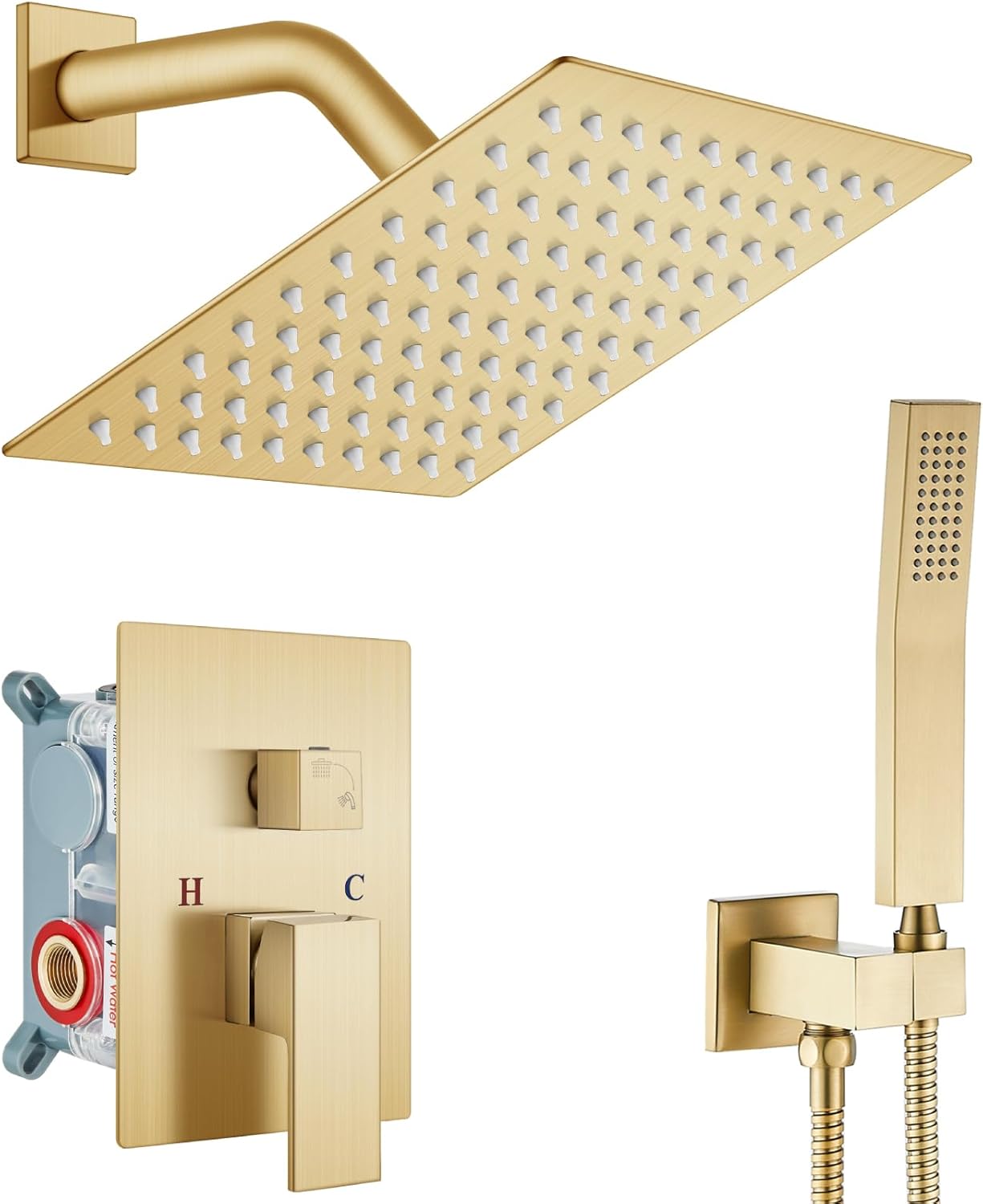 gotonovo Rainfall Bathroom Shower System Rain Shower Head and Handle Set Wall Mounted Shower Complete Combo Solid Brass Pressure Balancing Shower Mixer Valve 10 Inch Matte Black
